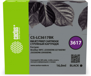 Картридж струйный Cactus CS-LC3617BK черный (16мл) для Brother MFC-J2330DW/J2730DW/J3530DW/J3930DW