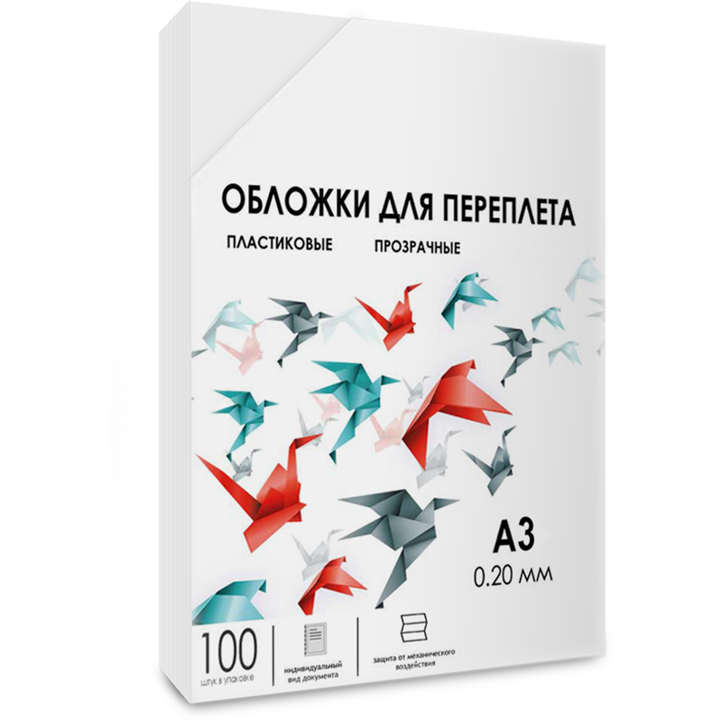 Обложки для переплета пластик A3 (0.2 мм) прозрачные 100 шт,