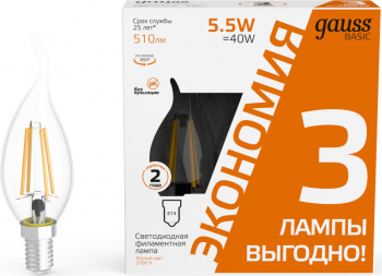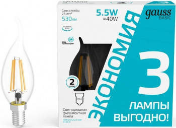 Лампа светодиодная Gauss Basic 1041116T 5.5Вт цок.:E14 свеча 240B 2700K
