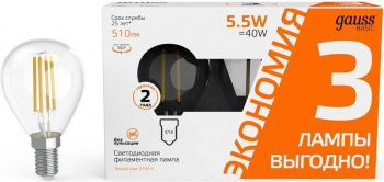 Лампа светодиодная Gauss Basic 1051116T 5.5Вт цок.:E14 шар 240B 2700K