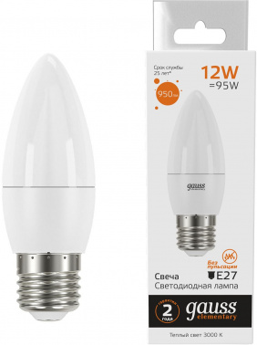 Лампа светодиодная Gauss Elementary 30212 12Вт цок.:E27 свеча 220B 3000K