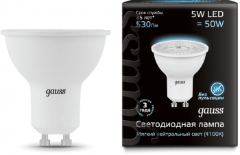 Лампа светодиодная Gauss MR16 5Вт цок.:GU10 спот 220B 4100K св.свеч.бел.ней.