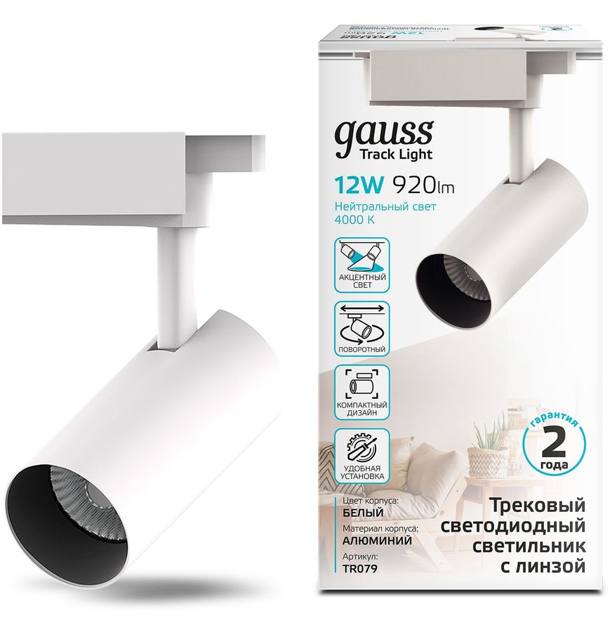 Трековая система GAUSS TR079, 12Вт, 4000К, белый нейтральный, белый