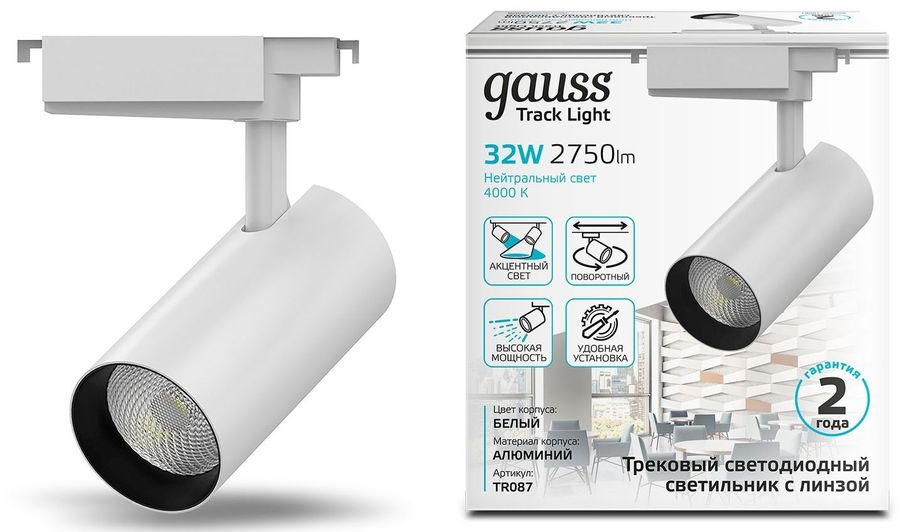 Трековая система GAUSS TR087, 32Вт, 4000К, белый нейтральный, белый