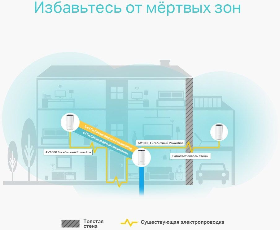 | Преимущества | Технология Powerline использует электропроводку вашего дома для более стабильного соединения между устройствами Deco, преодолевая стены и прочие преграды, мешающие прохождению сигнала, что позволяет увеличить скорость сети ещё больше и получить поистине бесшовное покрытие | |