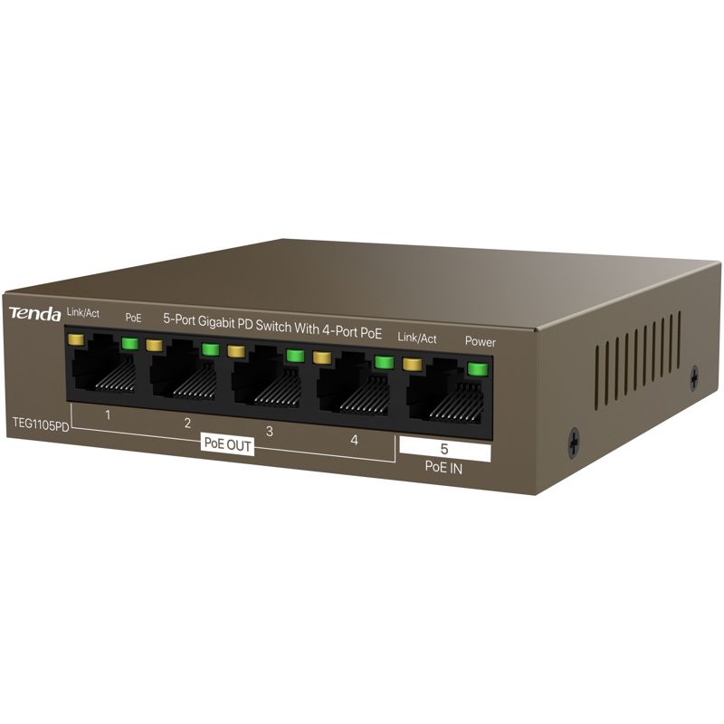 Коммутатор PoE TEG1105PD, отличающийся низкой стоимостью, высокой производительностью и функцией Plug & Play, представляет собой одновременно PSE и PD, предназначенный для таких сценариев сетей видеонаблюдения, как дороги в парках/скверах, средние и крупные фабрики и колледжи. Коммутатор небольших размеров и его можно легко установить в водонепроницаемом боксе на открытом воздухе.