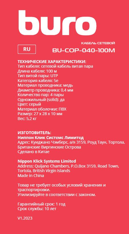 | PartNumber/Артикул Производителя | BU-COP-040-100M | |