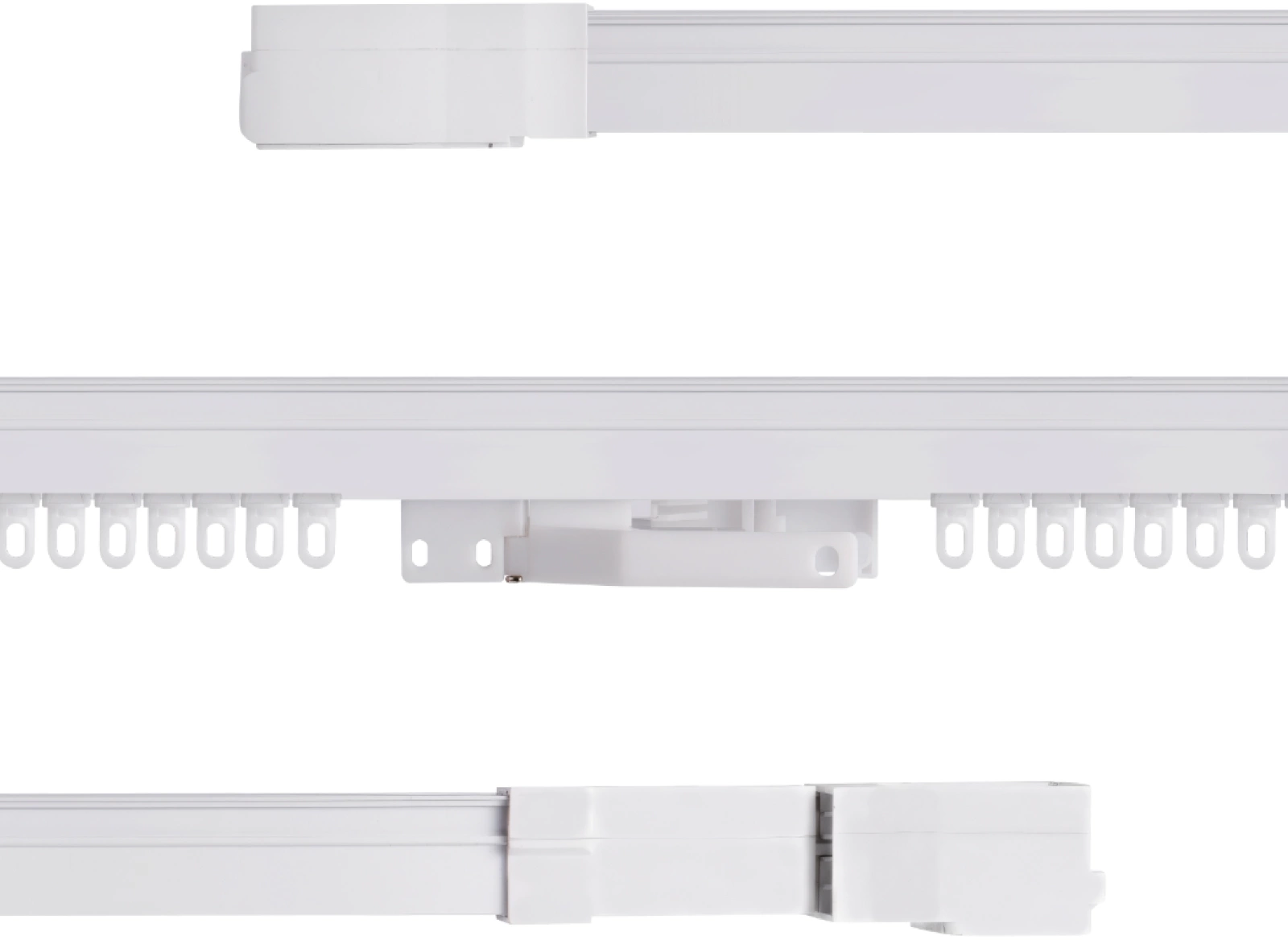 Комплектация Карниз 1 шт, Настенныи? кронштеи?н 6 шт, Крючок 34 шт, Винт+гаи?ка 12 шт, Саморез с дюбелем 20 шт, Потолочныи? кронштеи?н 2 шт+2 шт, Скоба центральнои? части, Крепление крючка для концевика 2шт