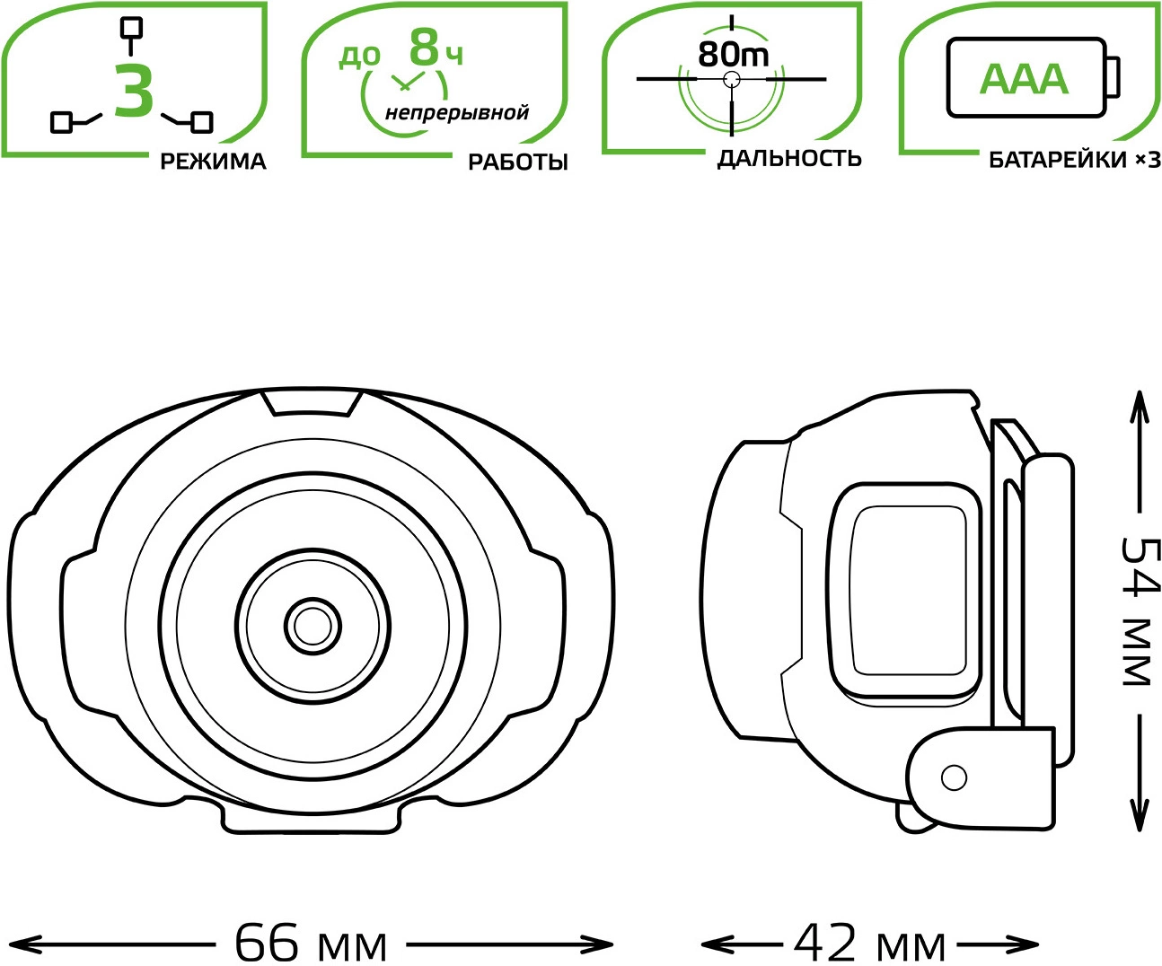 | Тип инструмента | Налобный фонарь | |
