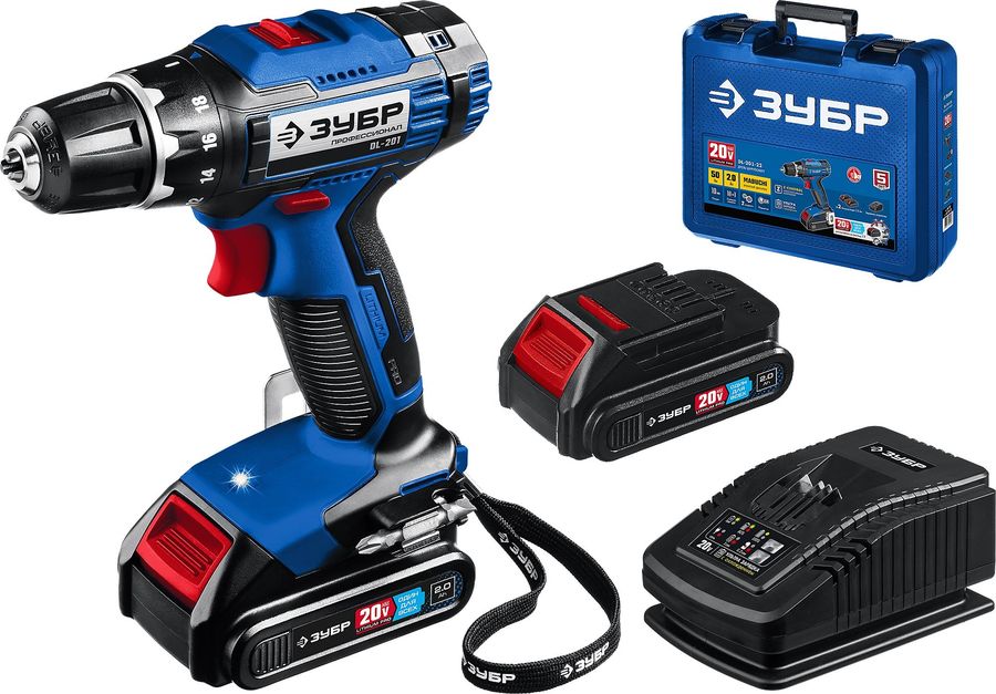 Дрель-шуруповерт Зубр DL-201-22 2Ач, с двумя аккумуляторами
