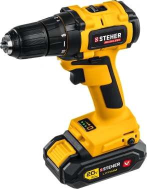 Дрель-шуруповерт STEHER CDB-200-1, 2Ач, с одним аккумулятором