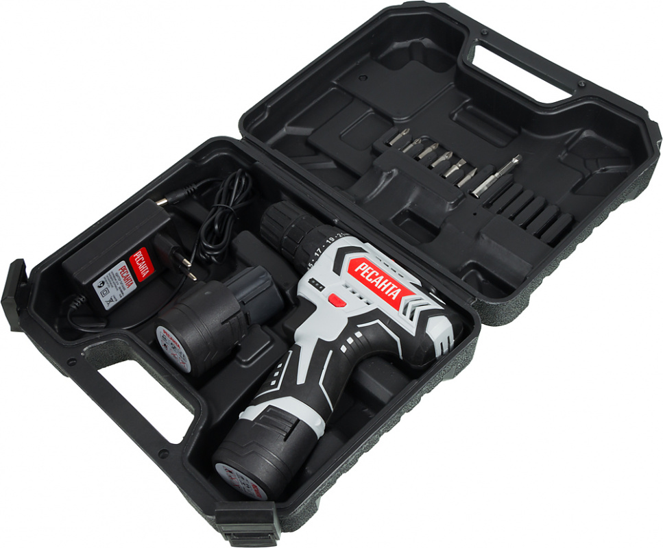 | Комплект поставки | Дрель-шуруповерт; аккумулятор - 2шт.; Бита-6шт; Адаптер-удлинитель для бит; Адаптер питания; Кейс | |