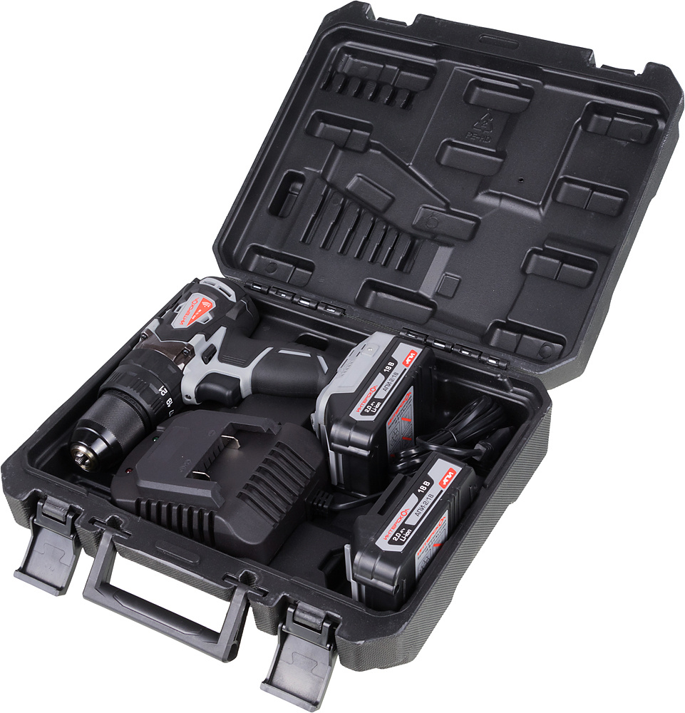 | Комплект поставки | Дрель-шуруповерт, аккумуляторный блок АПИ, 2 шт. 2 Ач., часовое моноблочное зарядное устройство, скоба, кейс пластмассовый, руководство по эксплуатации и инструкция по безопасности, гарантийный талон. | |