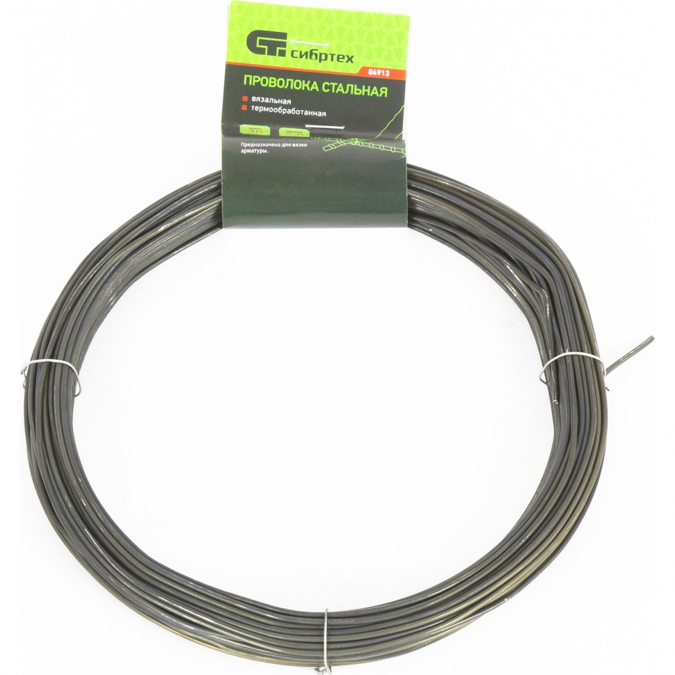 Проволока стальная 50 м, вязальная, термообработанная 0.9 мм Сибртех