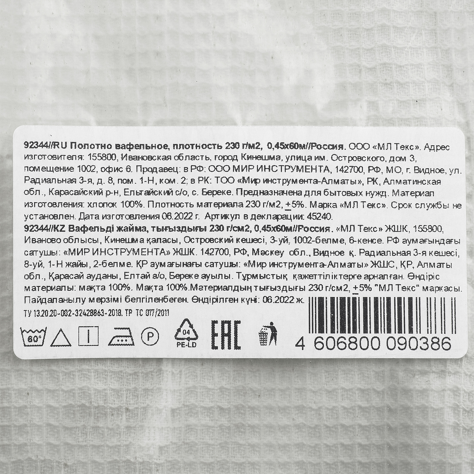 | Штрихкод | 4606800090386 | |