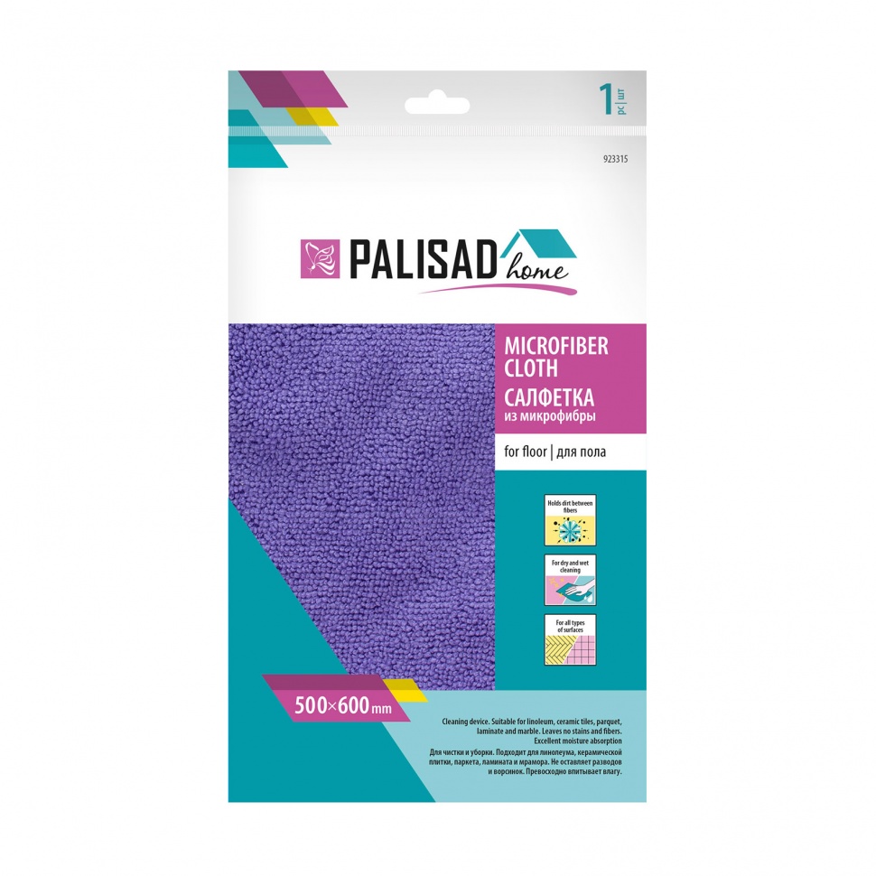 Салфетка из микрофибры для пола, 500 x 600 мм, фиолетовая,