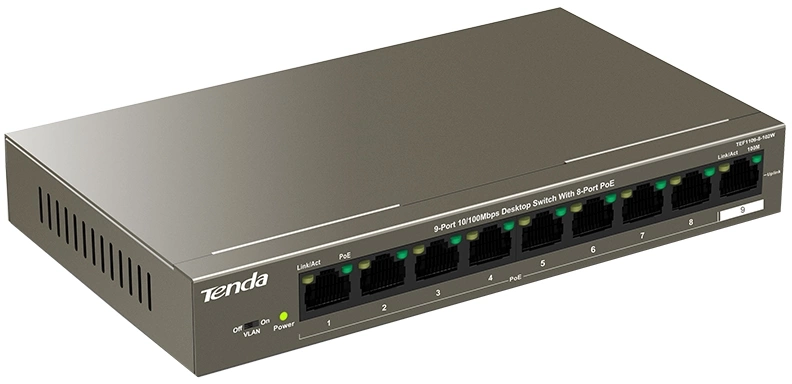 Коммутатор относится к неуправляемому типу с коммутацией Store and Forward, при которой устройство не только считывает адрес получателя, но и анализирует поступающие данные на предмет ошибок. Кроме того, данная модель поддерживает различные протоколы безопасности, что делает работу в сети безопасной. Для подключения оборудования на лицевой панели коммутатора предусмотрено 9 сетевых портов, 8 из которых - с PoE-питанием. Также устройство отличается большой таблицей MAC-адресов, что дополнительно способствует большому количеству одновременных подключений и стабильно высокой производительности.